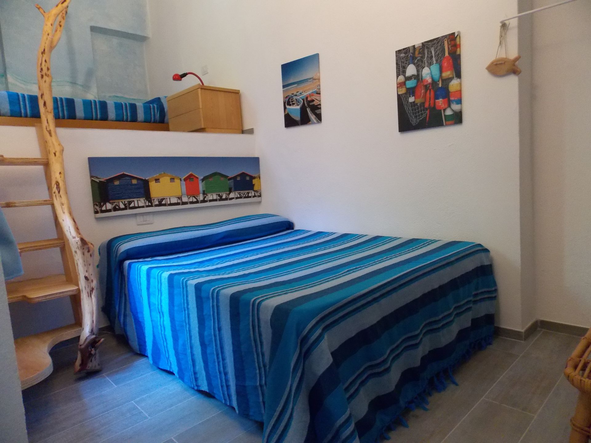 Grazioso appartamento con ampia veranda panoramica coperta. L’immobile, completamente arredato in stile marinaro, ha un affaccio retrostante su un cortiletto di proprietà dello stesso.